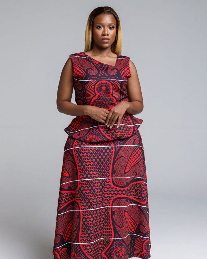 Mapoone Sleeveless-Top and Skirt (Red & Black) - Maxi