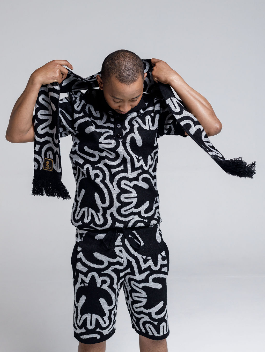 100% acrylic yarn Colors: black and silver grey