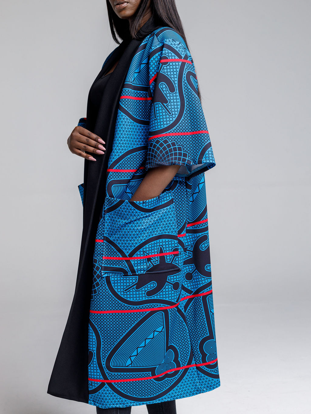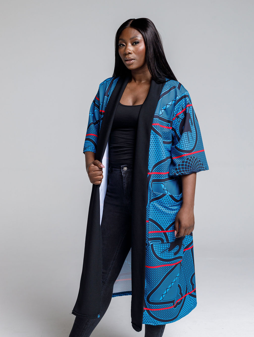 Thebe Kimono (Blue, Black & Red)
